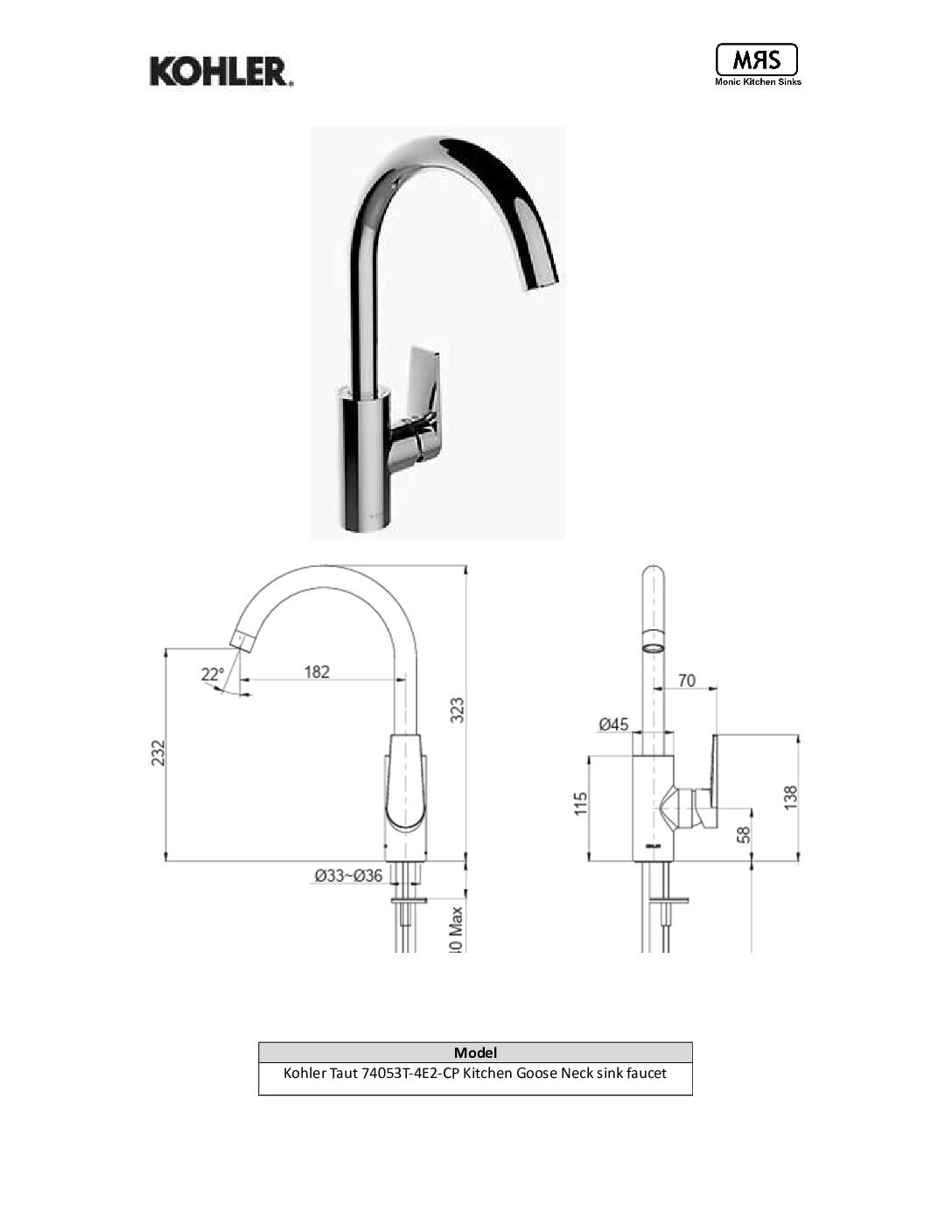 Kohler Taut Goose Neck sink faucet